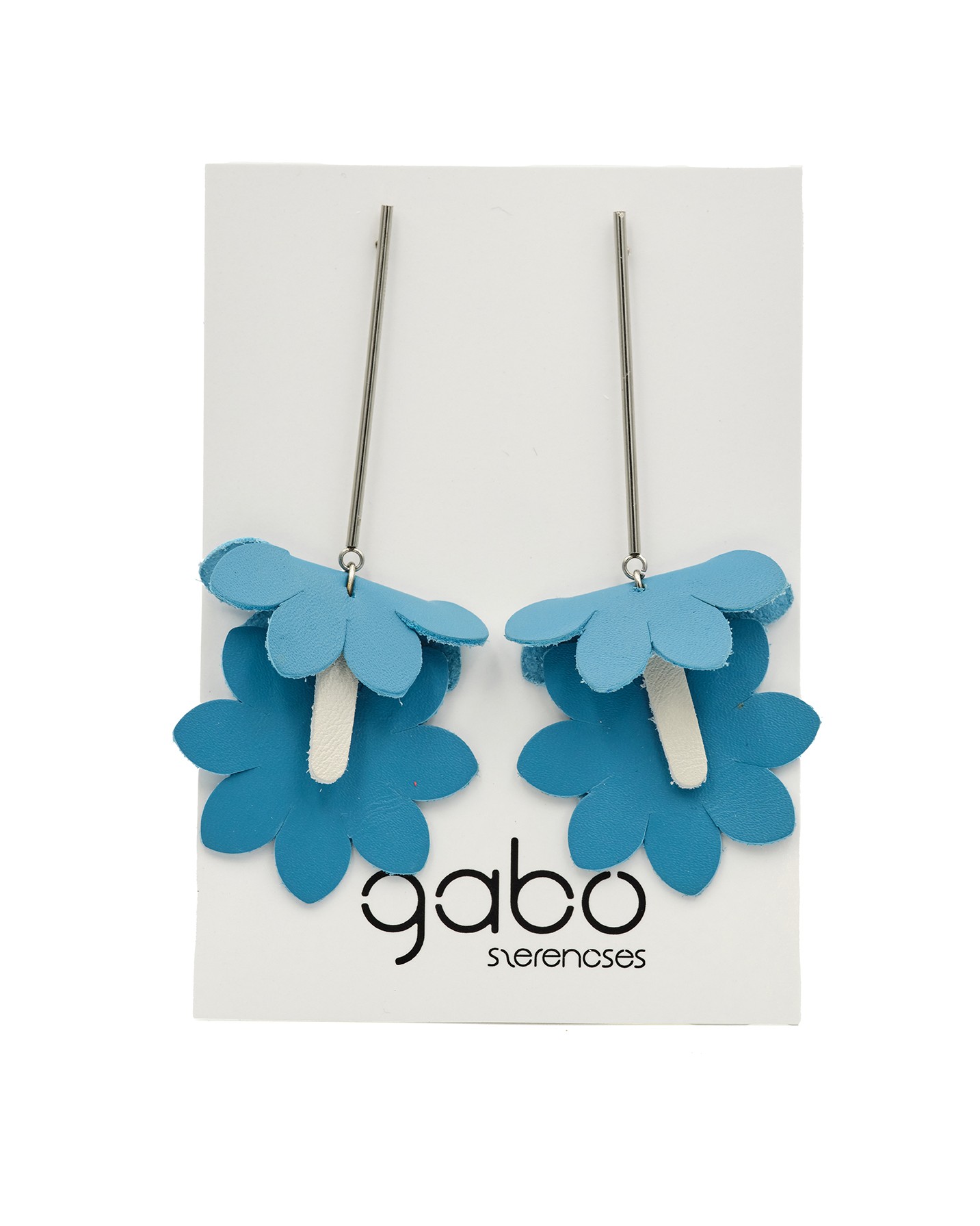 The Bloom – Large features a three-layer leather floral motif suspended from a long, minimal metal component. Despite its bold size, it is surprisingly lightweight: thanks to the leather material, it does not pull on the ear and remains comfortable even when worn all day.