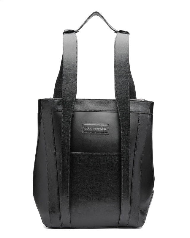 Trapéz hátizsák és válltáska egyben // Fekete crossprint, fényes