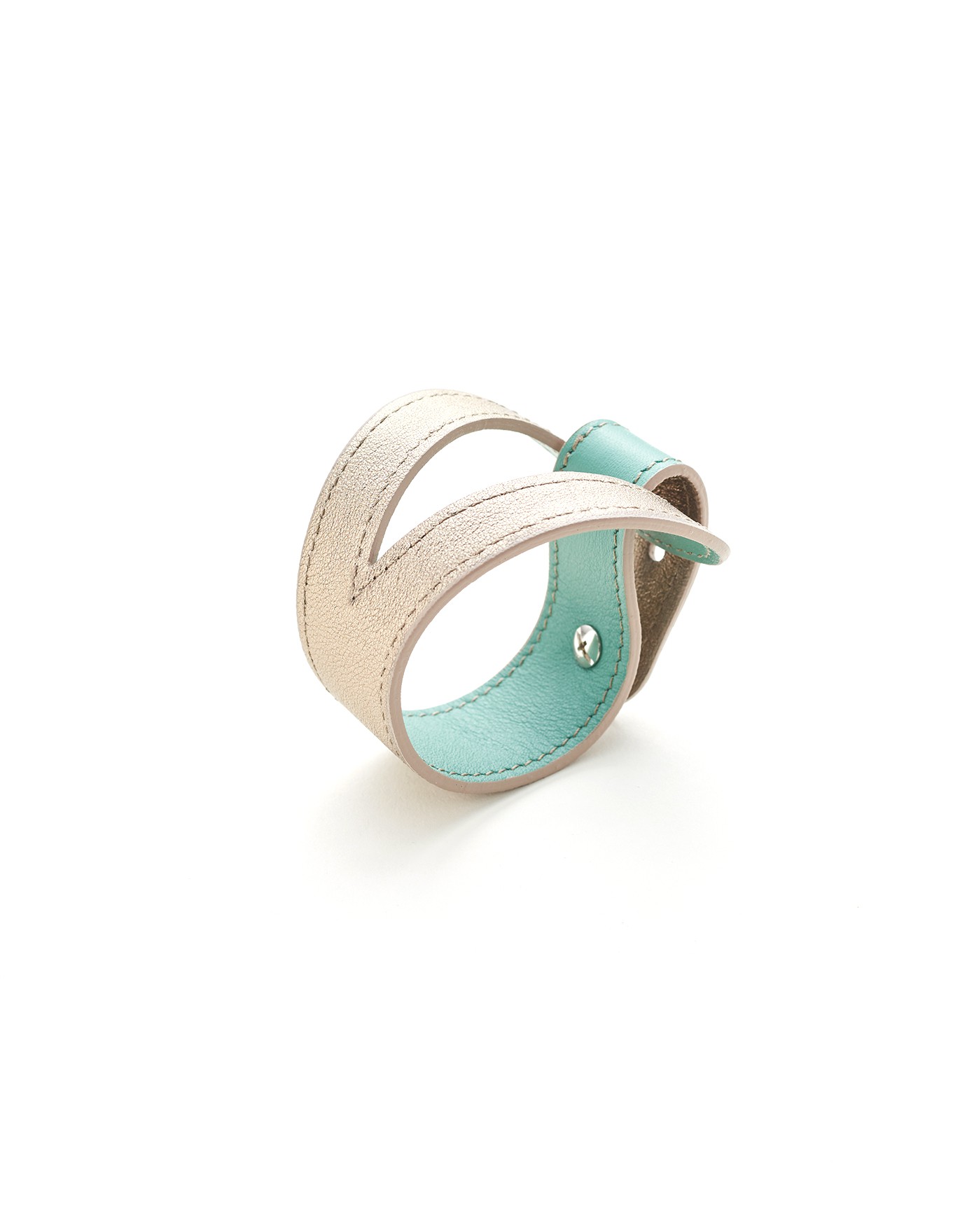 Ez a kétoldalú karkötő pisztolyszeggel záródik és könnyen megfordíthatod, így mindkét felét használhatod a karkötőnek. Önmagába fordul vissza, érdekes formát létrehozva.